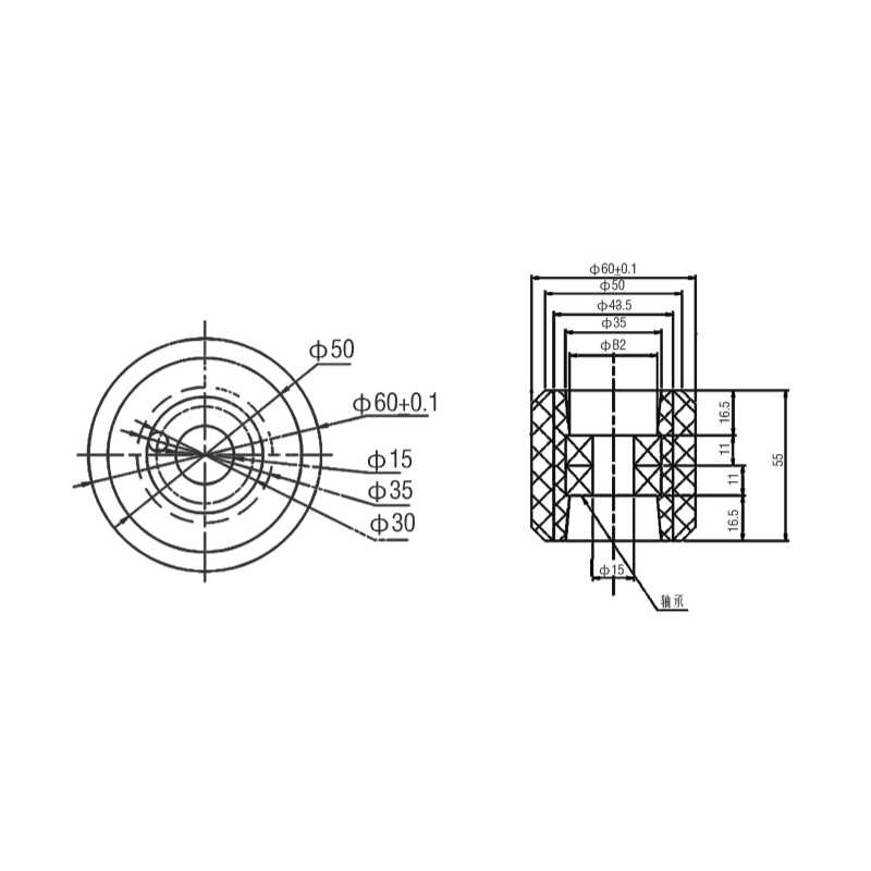 Das Andruckrollenprodukt hat einen Durchmesser von 60 mm und eine Höhe von 55 mm. Es ist mit 6202-Lagern ausgestattet. Dieses Lagermodell verfügt über eine hohe Tragfähigkeit und Drehzahl und eignet sich für Anwendungsszenarien von Rolltreppenrollen. Durch die Verwendung von CPU (einem Hochleistungskunststoffmaterial) können stabile physikalische und chemische Eigenschaften über einen langen Zeitraum aufrechterhalten und die Lebensdauer der Walzen verlängert werden; Für die Rollen werden hochwertige Lager und Materialien verwendet, die eine hohe Tragfähigkeit aufweisen und den Anforderungen unterschiedlicher Belastungen der Rolltreppe gerecht werden können. Betriebsanforderungen unter den gegebenen Bedingungen.