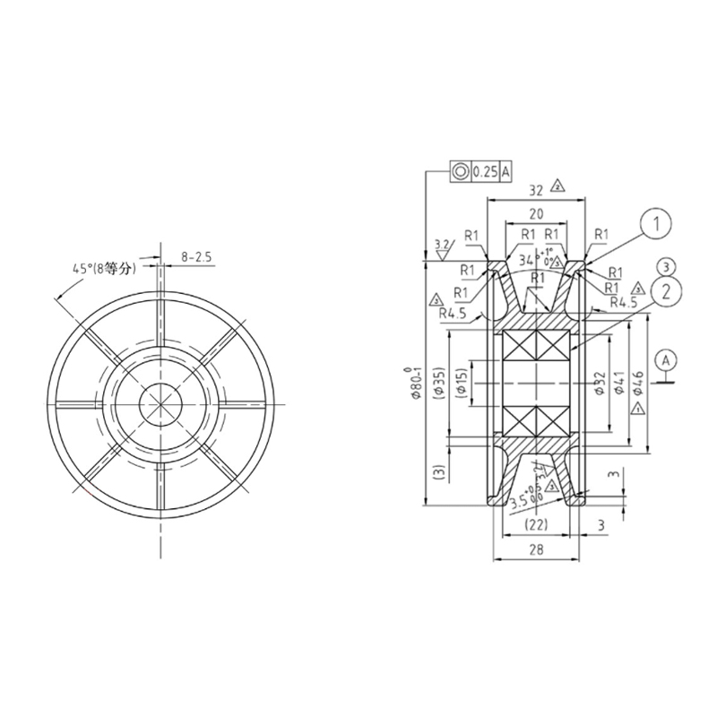 Die V-förmige Walze hat ein V-förmiges Design. Diese Konstruktion ermöglicht einen besseren Kontakt der Rolle mit der Führungsschiene oder dem Förderband im Rolltreppensystem und sorgt so für eine stabile Unterstützung und Führung. Der Außendurchmesser beträgt 80 mm und die Höhe 30 mm, was für eine Vielzahl von Anwendungen geeignet ist. Die Installationsanforderungen von Rolltreppen und Fördergeräten gewährleisten die Kompatibilität mit vorhandener Ausrüstung. Ausgestattet mit 6202-Rillenkugellagern können sie den Einsatzanforderungen von Rolltreppenrollen bei Hochgeschwindigkeitsbetrieb und schweren Lastbedingungen gerecht werden. Die V-förmige Walze besteht aus Nylon, das eine gute Schlagfestigkeit und selbstschmierende Eigenschaften aufweist.